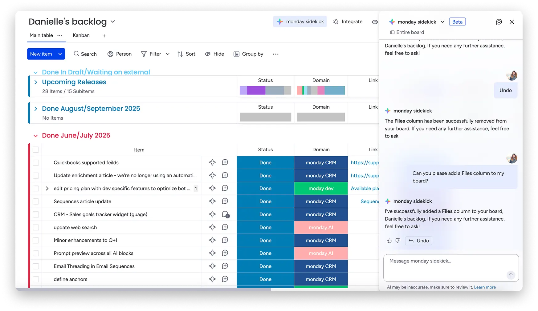 monday Sidekick ist dein KI-Assistent direkt im Workspace
