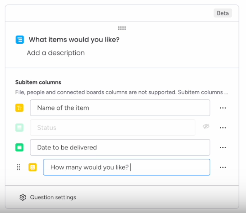 Mit dem Januar-Update kann man im monday WorkForms nun Formularbeiträge mit Subitems direkt in Boards sammeln, um eine noch detailliertere und präzisere Datenerfassung zu ermöglichen.