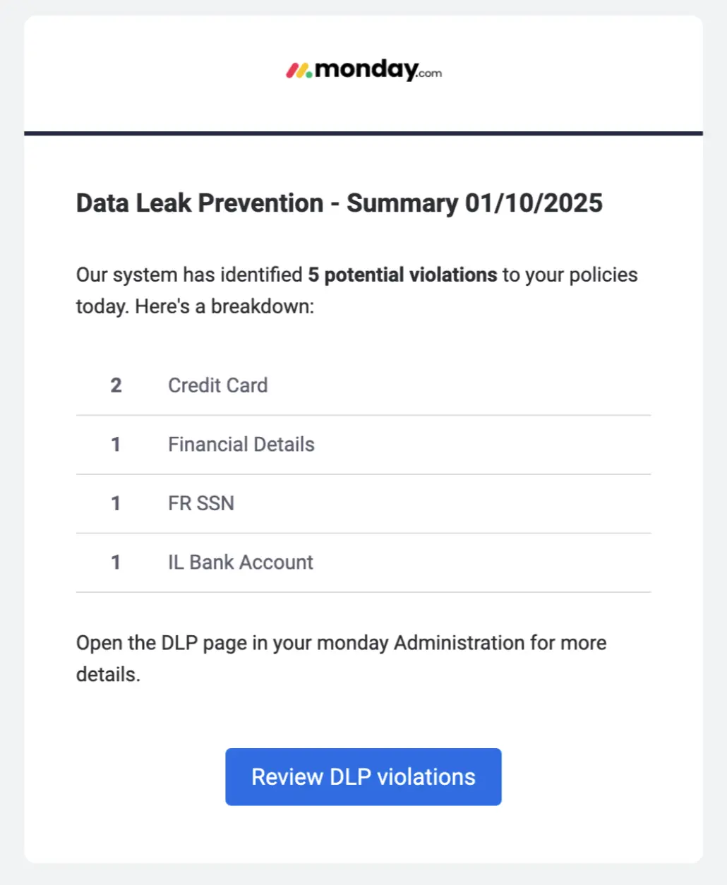 Data Leak Prevention: Automatische Benachrichtigung bei neuen Verstössen