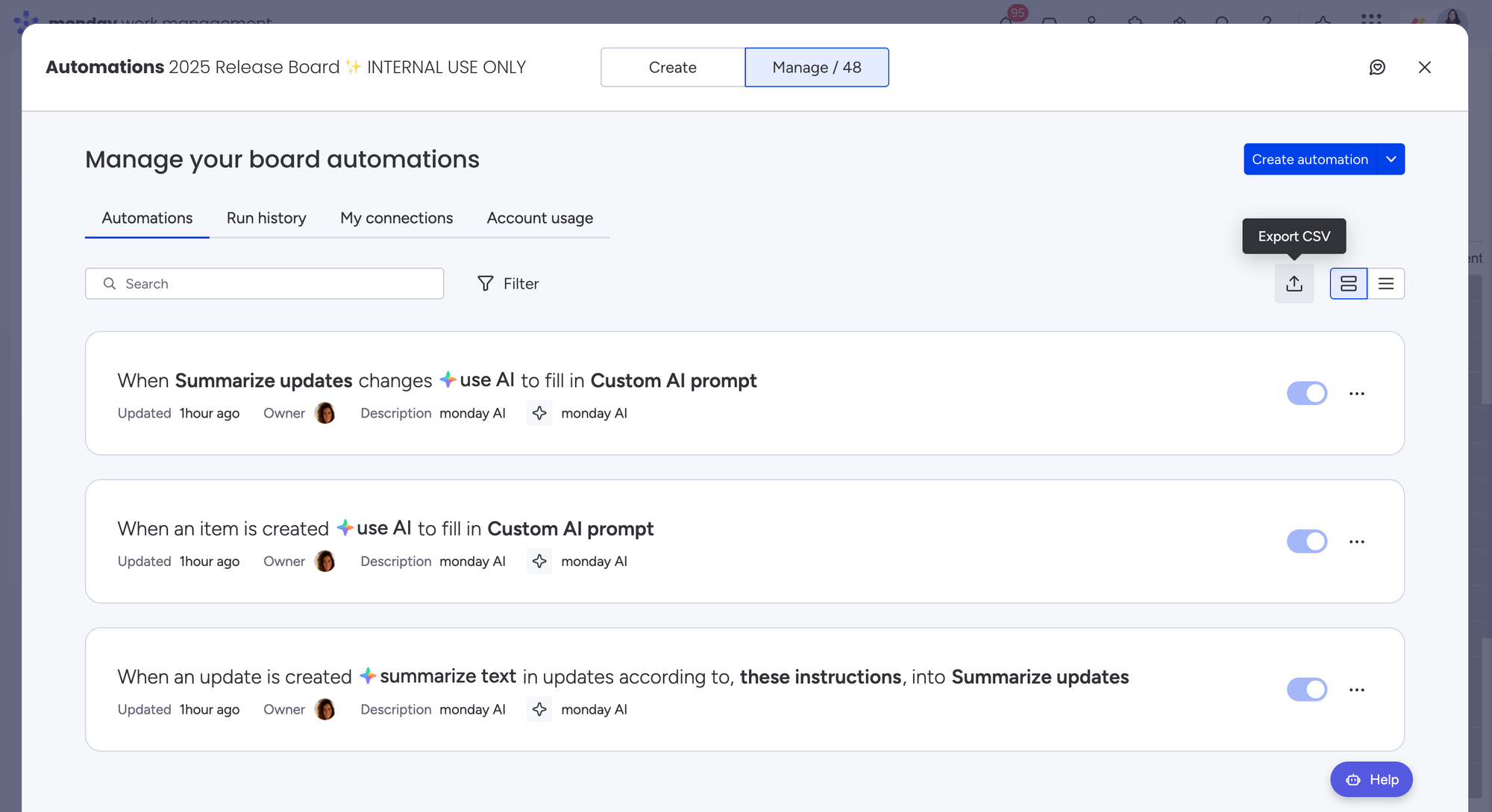 - Live field updates: You can always see the latest names of boards, columns, status fields, and more. If something is renamed, the change is automatically reflected in your workflow.