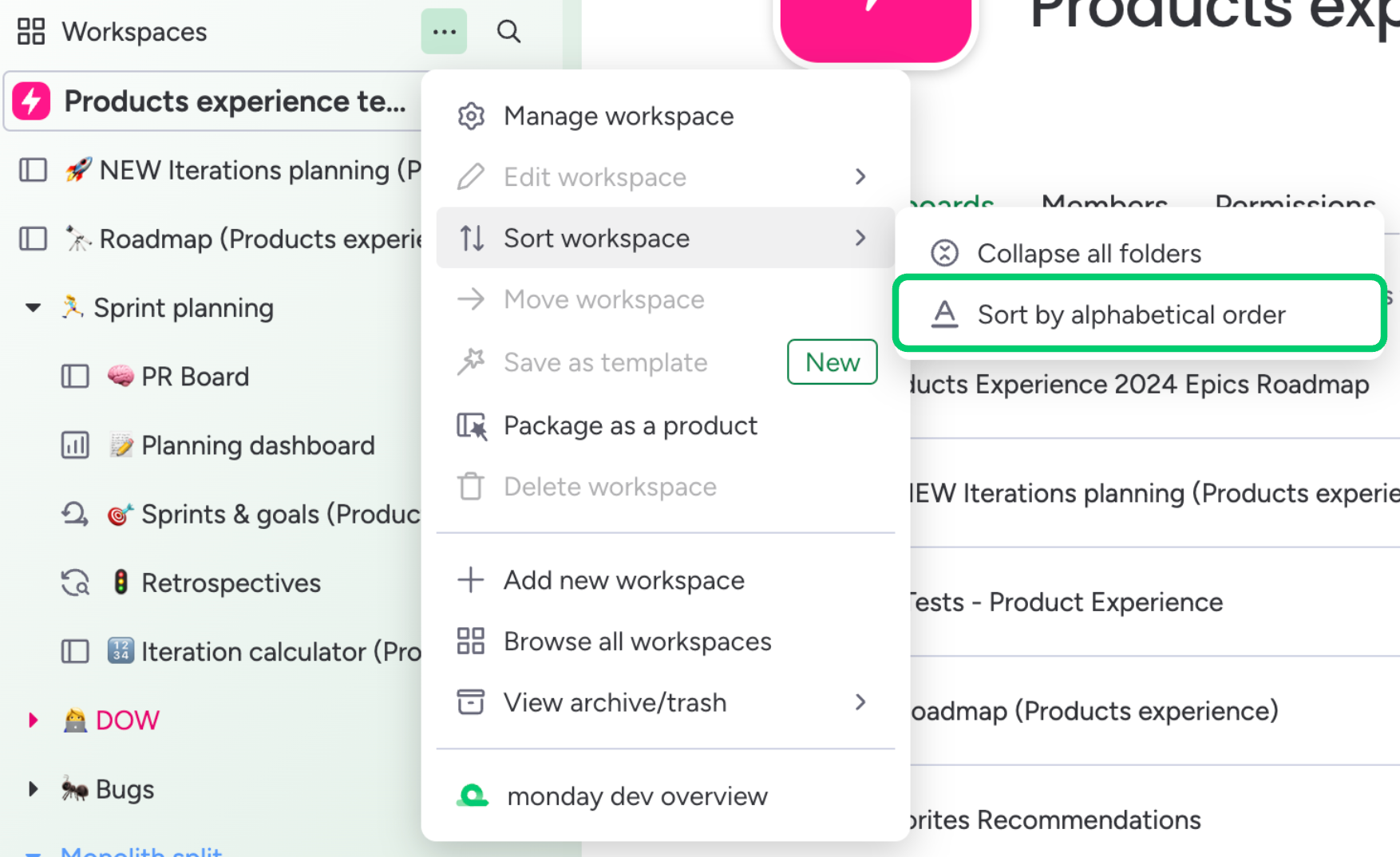 You can now easily sort the contents of your workspace alphabetically by prefixes — for example, by project or customer IDs. This makes it even easier to quickly find categorized content and navigate efficiently. Of course, you can return to standard sorting at any time!