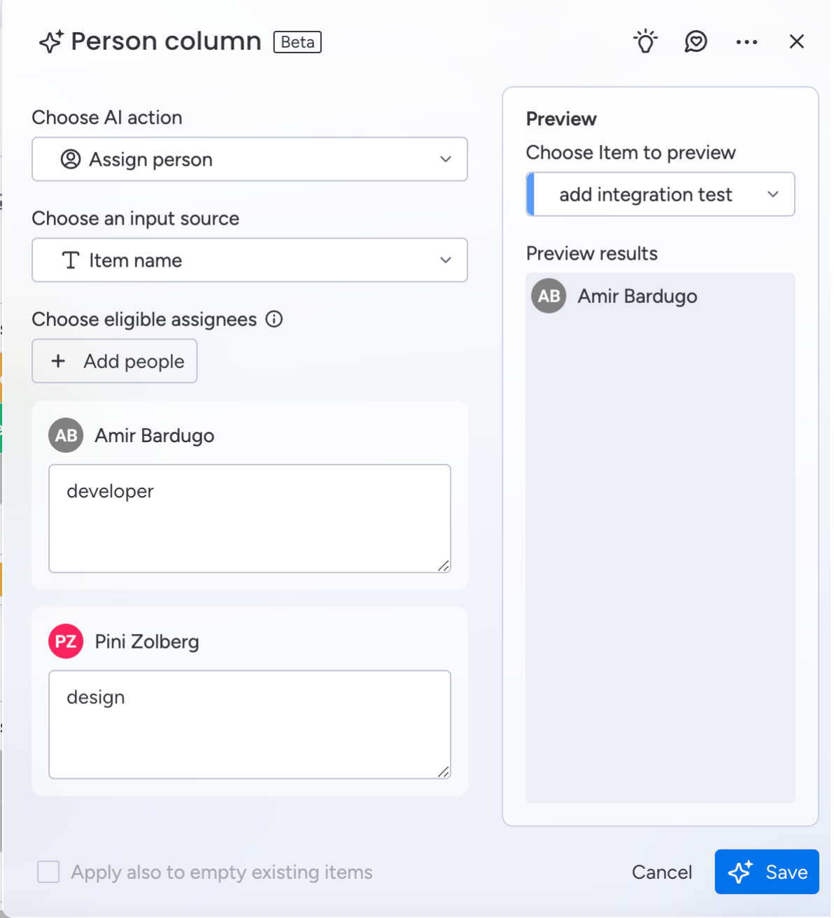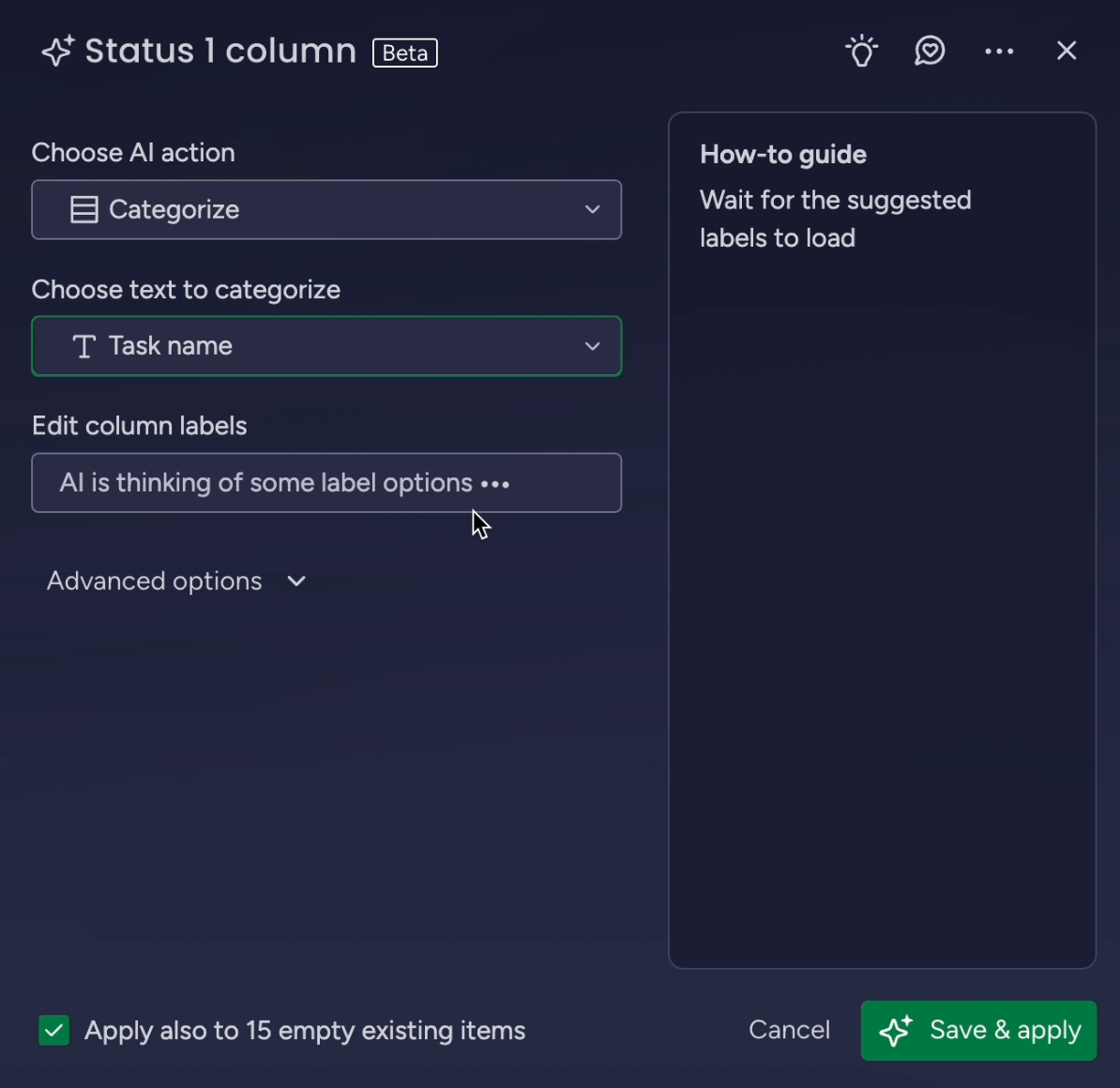 As soon as you select a column, the AI automatically analyzes the content of each item and suggests more precise and effective labeling options.