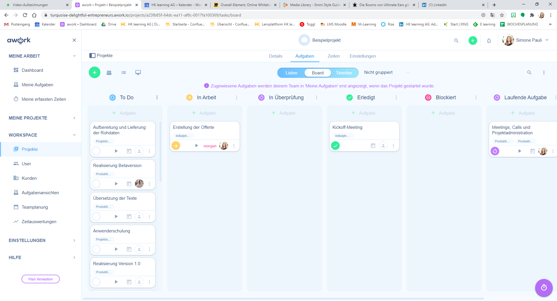 Incorporation into awork On the other hand, something is faster and easier. Thanks to the simpler user interface, teams can get started right away, without long training periods. The tool is designed to help new users quickly find their way around, making it much easier to start a project or introduce new team members. Especially for small to medium-sized teams that are looking for quick implementation, awork is the ideal choice, but it must be borne in mind that not all requirements that a company has can be covered with this tool.